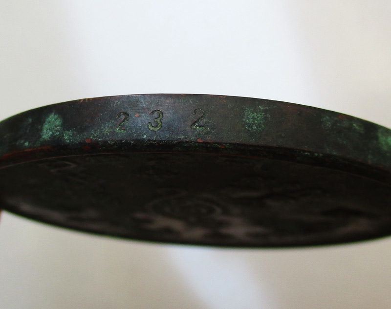 เหรียญบาตรน้ำมนต์ หลวงปู่ธูป วัดแคนางเลิ้ง กรุงเทพฯ รุ่นแรก พ.ศ.2518 เหรียญใหญ่ขนาด 7 ซ.ม. ตอกโค๊ต ตอกเลข