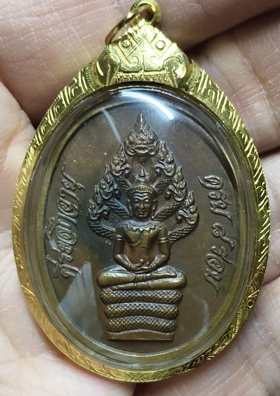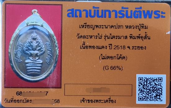 เหรียญพระนาคปรก หลวงปู่ทิม วัดละหารไร่ รุ่นไตรมาส (ปรกไตรมาส) พิมพ์อุสั้น เนื้อทองแดง ปี 2518 จ.ระนอง (ไม่มีกรอบทองแล้วนะครับ) พร้อมบัตรรับรองการันตี