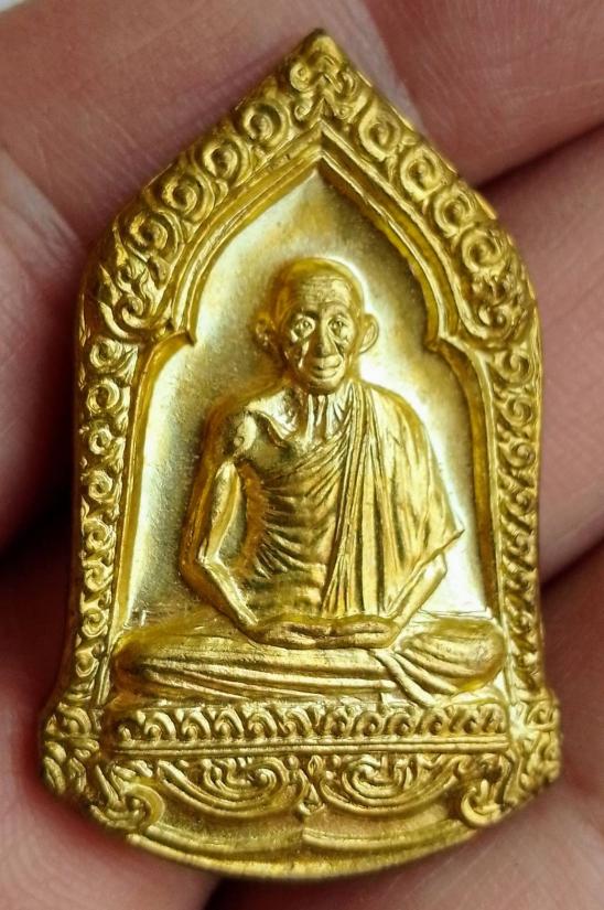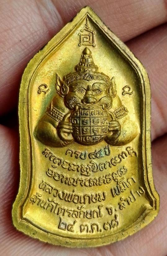 เหรียญรุ่นสุริยุปราคา หลวงพ่อเกษม เขมโก สำนักสุสานไตรลักษณ์ จ.ลำปาง ปี 2538 เนื้อทองฝาบาตร พร้อมกล่อง