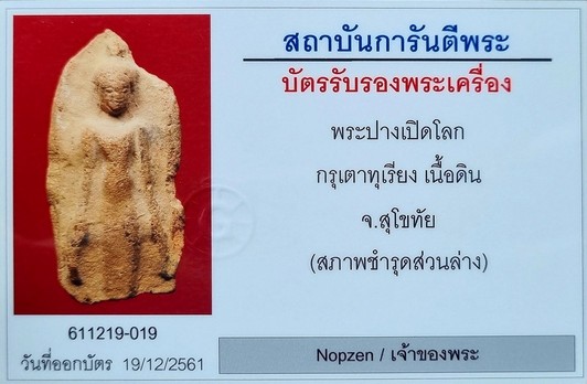 พระร่วงยืนเปิดโลก เนื้อดิน กรุเตาทุเรียง จ.สุโขทัย มีหน้าตา +บัตรรับรอง