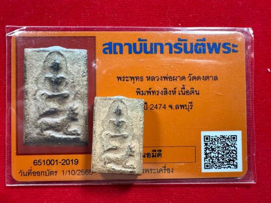 หลวงพ่อผาด พิมพ์ขี่เสือ เนื้อดิน วัดดงตาล จ.ลพบุรี ปี 2474 มีบัตรสมาคม