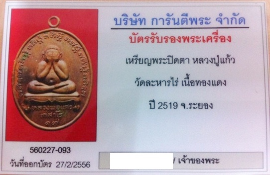 ๙๙๙ --- วัดใจพระสวย --- เหรียญปิดตา หลวงปู่แก้ว เนื้อทองแดง วัดละหารไร่ ปี 19 (2) --- ๙๙๙