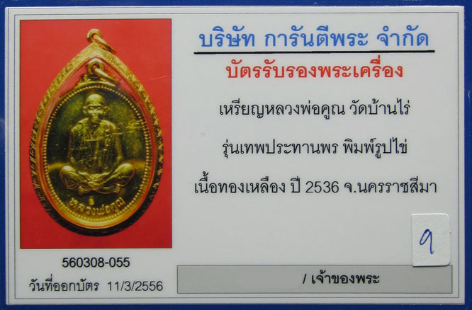 | รายละเอียด | เหรียญรูปไข่เทพประทานพร หลวงพ่อคูณ ปี36 เนื้อทองเหลือง สภาพสวยผิวเงาแว็ปพร้อมเลี่ยมทอง(มีบัตรรับรอง) |