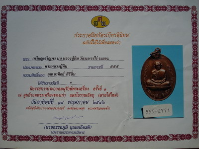 หลวงปู่ทิม......เหรียญเจริญพรบน พร้อมตลับทอง+ใบประกาศนียบัตรรางวัลที่ 1 ปี 2546