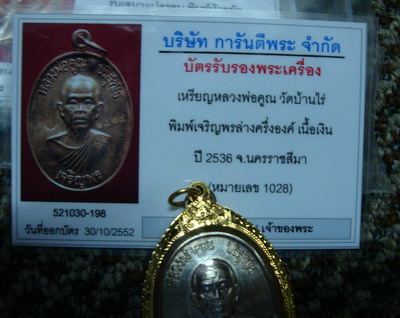 เจริญพรล่างเนื้อเงินห่มจีวรสวยๆทองแท้ๆพร้อมบัตรนะครับ