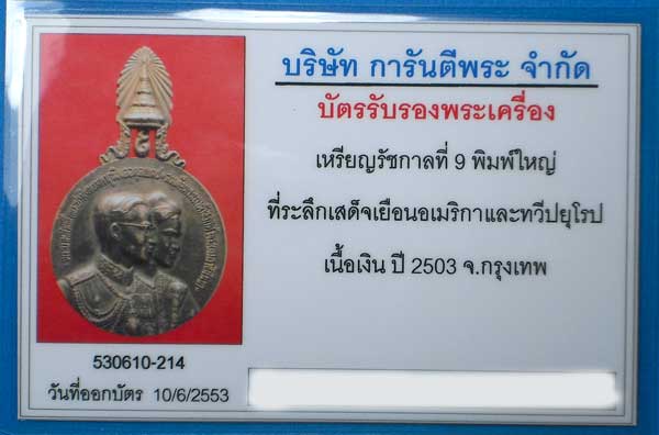 6.เหรียญเสด็จเยือนอเมริกา ยุโรป เนื้อเงิน ปี2503