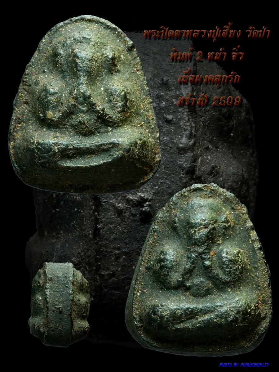 พระปิดตา 2 หน้า พิมพ์จิ๋ว เนื้อผงคลุกรัก ปี 09 หลวงปู่เฮี้ยง วัดป่า
