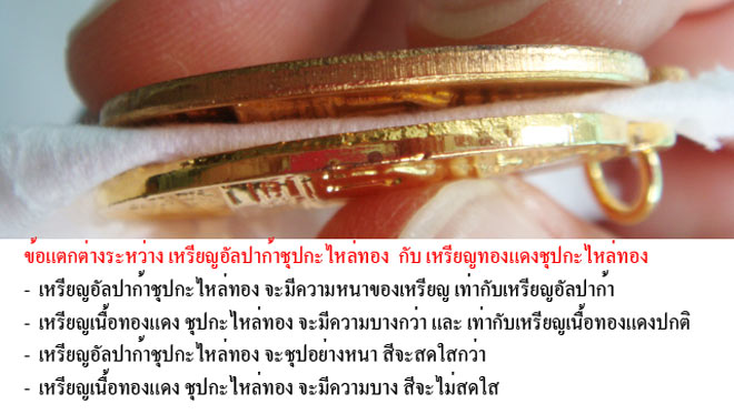 และเมื่อนำมาเทียบกับเหรียญเนื้อทองแดง กะไหล่ทอง ก็ยิ่งเห็นความชัดเจนมากขึ้น จึงน่าจะสรุปได้ เบื้องต้นว่า เป็นเนื้ออัลปาก้า ที่นำมากะไหล่ทองจริง