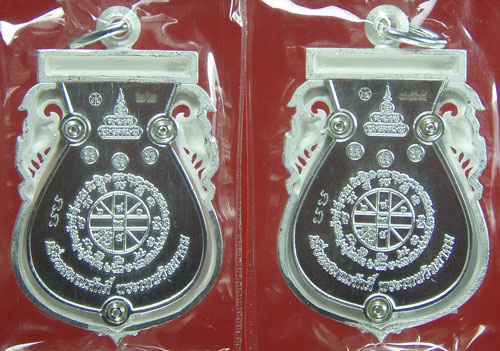 เหรียญเสมาฉลุเลื่อนสมณศักดิ์ เงิน ลงยาแดง&น้ำเงิน