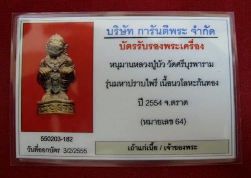หนุมาน มหาปราบไพรี หลวงปู่บัว ถามโก นวะก้นทองคำ # 64 สร้าง ๙๙ ตน +++ สวย สวย ครับ +++