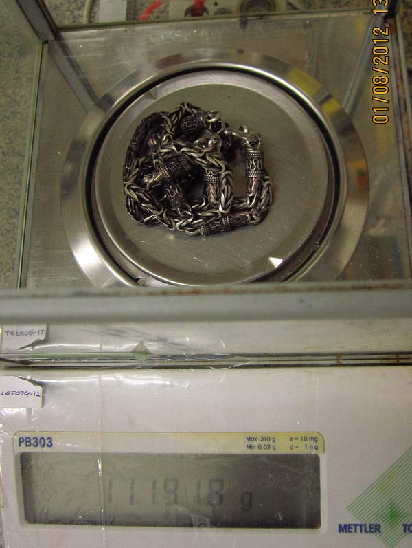 เป็นของผมเองครับ..ตอนชื้อมาประมาณ 2ปีที่แล้ว ราคา เกือบห้าพัน ชั่งที่ร้านตอนที่ซื้อ น้ำหนัก 108 กรัม แต่ตอนผมชั่ง(ก่อนลงประมูล) น้ำหนักเพิ่มขึ้น เป็น 111 กว่าๆ น่าจะเป็นคราบสกปรก เพราะไม่ได้ล้างแบบขัดแค่ล้างน้ำเปล่าเฉยๆ..