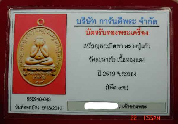 เหรียญพระปิดตา หลวงพ่อแก้ว วัดระหารไร่ เนื้อทองแดง ปี.2519 ตอกโค๊ต 95 มีจาร 3 จุด 3 โค๊ต สภาพสวยยังมีผิวไฟ พร้อมบัตร