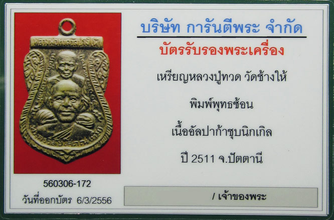 | ชื่อพระเครื่อง | **วัดใจ** เหรียญพุทธซ้อน หลวงปู่ทวด ปี11 เนื้ออัลปาก้าชุบนิกเกิ้ล บล็อกหน้า09หลังมีเลข ๕ สภาพสวยพร้อมเลี่ยมทองยกซุ้ม+บัตรรับรองพระแท้(004) |