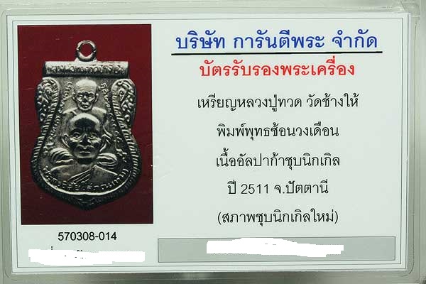 เหรียญหลวงปู่ทวด พิมพ์พุทธซ้อนนิยม วงเดือน หูขีด หลังเลข ๕ ปี๑๑