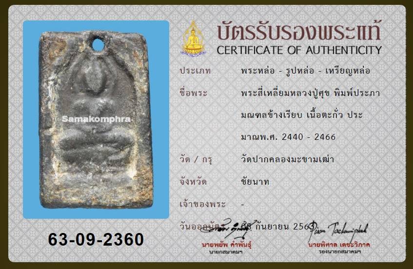 หลวงปู่ศุขพิมพ์ประภามณฑลข้างเรียบเนื้อตะกั่