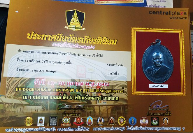 เหรียญหลวงพ่อแดงวัดเขาบันไดอิฐ รุ่น แจกผ้าป่า บล็อกนิยม เจ็ดหางกระรอก เนื้อทองแดง ปี 2516 สภาพสวย พร้อมบัตรรับรอง และ ใบประกาศที่1 งานเซ้นทรัลพลาซ่า เวสต์เกต