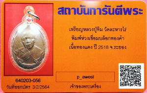 หลวงปู่ทิม วัดละหารไร่ เหรียญห่วงเชื่อม บล๊อคทองคำ