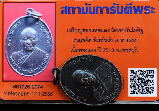 เหรียญแซยิด หลัง ๗ หางตรง เนื้อทองแดง ปี 2513 หลวงพ่อแดง วัดเขาบันไดอิฐ จ.เพชรบุรี มาพร้อมบัตรรับรองพระแท้การันตีพระ\r\nhttps://www.g-pra.com/auction/view.php?aid=30955699