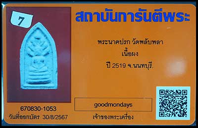 | พระผงพิมพ์นาคปรก ปี2519 วัดพลับพลา นนทบุรี |