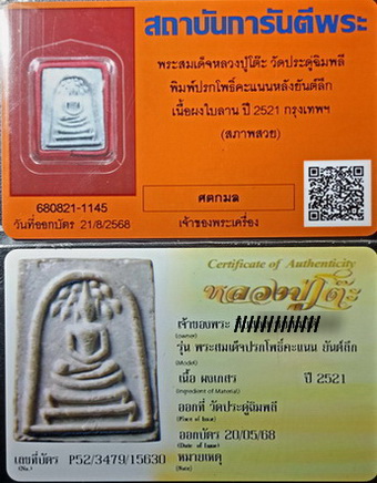 ..พระสมเด็จปรกโพธิ์ พิมพ์คะแนนหลังยันต์ลึก มีทั้งเนื้อผงเกสร สร้าง 1,200 องค์ และ เนื้อผงใบลาน สร้าง 300 องค์ องค์พระมีขนาดความกว้าง 1.5 ซม. สูง 1.8 ซม ( หลังยันต์ตื้นสร้าง 30,000 องค์ ยันต์ลึกหายากกว่ามาก ) ............องค์ที่ลงในชมรมเป็นเนื้อผงเกสรหลังยันต์ลึก พระสวยใบโพธิ์ชัดเจน ซุ้มองค์พระเรียบร้อยดี ดูง่าย ตัวหนังสือยันต์หลังชัดเจนมาก ***รับประกันไม่มีอุดซ่อม เลี่ยมพลาสติกกันน้ำอย่างดีพร้อมนำไปจับขอบทองได้เลย ***ติดรางวัลที่1 มาแล้ว 2งาน มีให้พร้อมใบประกาศ และ บัตรรับรอง2 สถาบัน