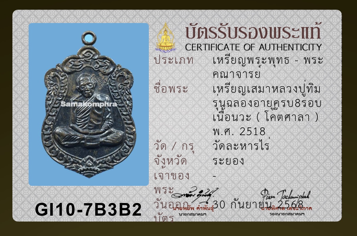 เหรียญเสมาแปดรอบ หลวงปู่ทิม วัดละหารไร่ นวะโลหะ ตอกโค๊ตศาลา