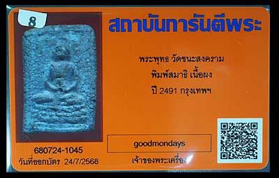 | พระผงน้ำมัน พิมพ์สมาธิ ปี2491 วัดชนะสงคราม กทม |
