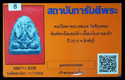 | พระปิดตา เนื้อผงใบลาน ปี2514 หลวงพ่อแพ วัดพิกุลทอง |