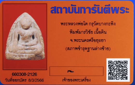 หลวงพ่อโต บางกระทิง พิมพ์มารวิชัย เนื้อดิน พร้อมใบรับรองจีพระ