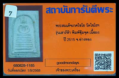 | สมเด็จเกษไชโย พิมพ์ 7 ชั้น ซุ้มจุด ปี2515 อ่างทอง |