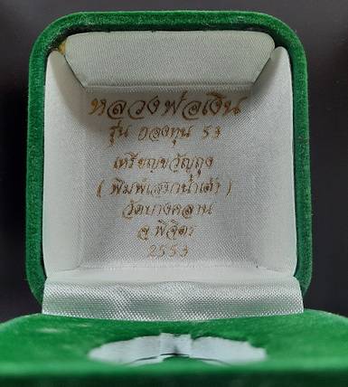 เหรียญขวัญถุง บังเกิดทรัพย์ หลวงพ่อเงิน รุ่นกองทุน 53 พิมพ์เสมาน้ำเต้า เนื้อนวะโลหะหน้ากากทองคำ หมายเลข 6 ตอกโค๊ต จำนวนการสร้าง 160 เหรียญ เหรียญนี้เป็นเลขตัวเดียวหายากมากๆๆ พร้อมกล่องเดิมจากวัด เลี่ยมกันน้ำไว้เพื่อรักษาผิวเหรียญ สภาพสวยเดิมๆ