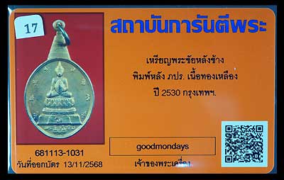 เหรียญพระชัยหลังช้าง เนื้อทองเหลือง ปี2530 หลวงพ่อ |