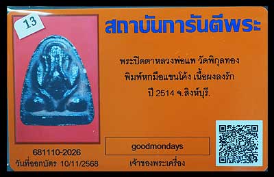 | พระปิดตา เนื้อผงใบลาน ปี2514 หลวงพ่อแพ วัดพิกุลทอง |