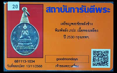 เหรียญพระชัยหลังช้าง เนื้อทองเหลือง ปี2530 |
