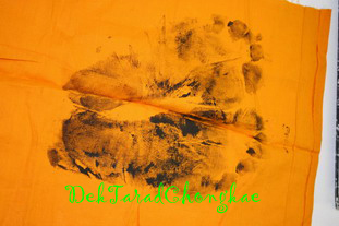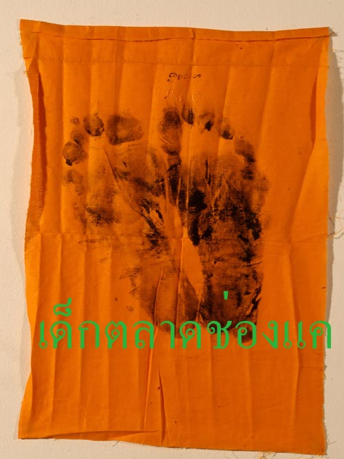 รอยเท้าผืนี้ทำขึ้นเพื่อแจกกรรมการเฉพาะนะครับ จะเป็นบนจีวร ถ้าบนผ้าขาวหรือผ้าแดง จะให้บูชาที่วัด ผืนนี้ได้รับเกียรติลงหนังสือหลวงพ่อพรหมฉบับใหม่ล่าสุดของพี่สุพจน์พระเครือ่งครับ