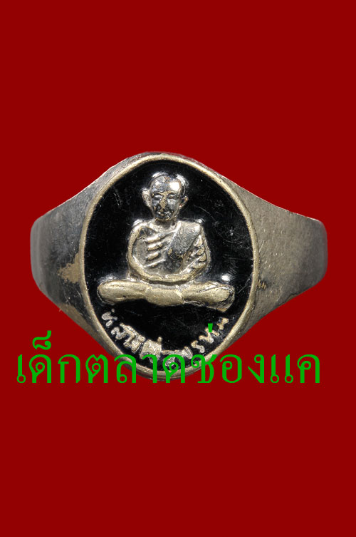 แบบถมดำ หัวแหวนจะเป็นรูปหลวงพ่อด้านหลังถมสีดำครับ รุ่นนี้จะมี 3 แบบ แบบถมเหลือง และถมดำข้างขีด กับไม่ขีด วงนี้ข้างไม่ขีด ขนาดเส้นรอบวงภายในแหวน (ส่วนที่สวมนิ้วประมาณ 64 มม. หรือเบอร์ 58)