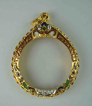 | กรอบทองคำ ทรงกลม ยกซุ้ม หัวสิงห์ ลงยา หน้ายับทราย |