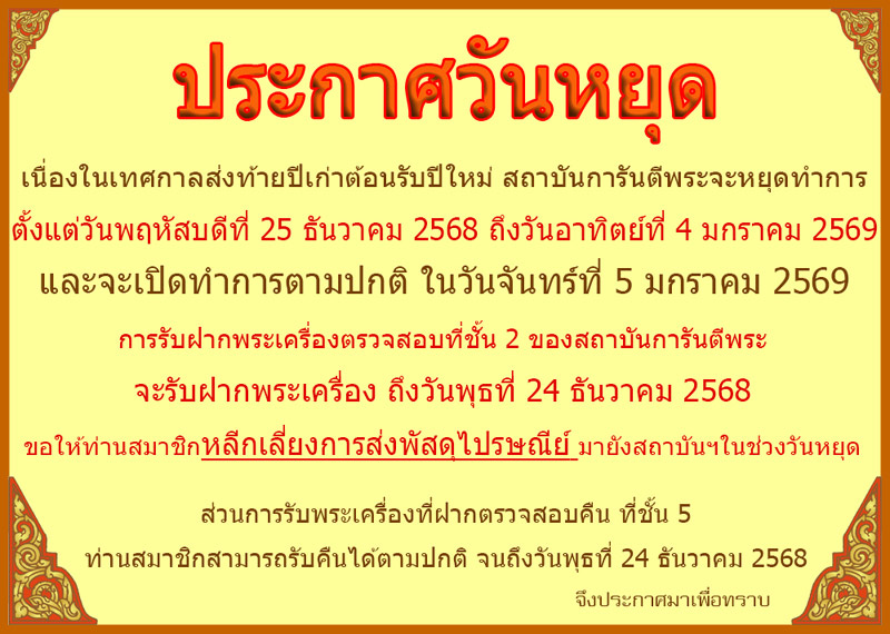 ประกาศวันหยุด เทศกาลวันปีใหม่ ปี2569