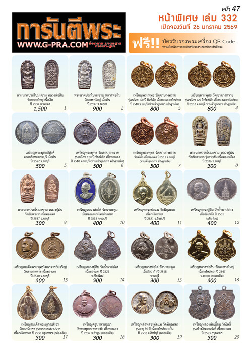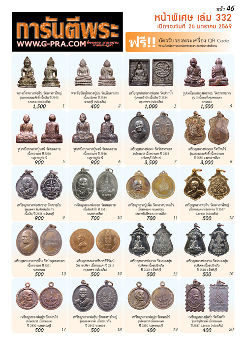 💥ขอเชิญเช่าบูชาพระเครื่องราคาถูกพิเศษ แถม บัตรรับรอง 1 ใบ ** หน้าพิเศษ ( จำนวน 4 หน้า ) ของฉบับที่ 332 https://www.g-pra.com/magazine.php