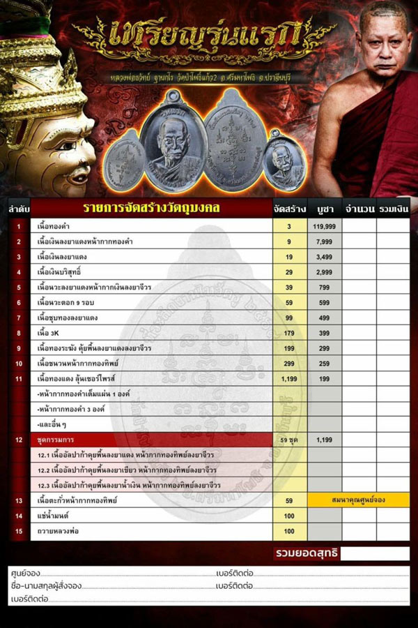 9.เนื้อทองระฆัง คุ้ยพื้นลงยาแดงลงยาจีวร บูชา 299 บาท