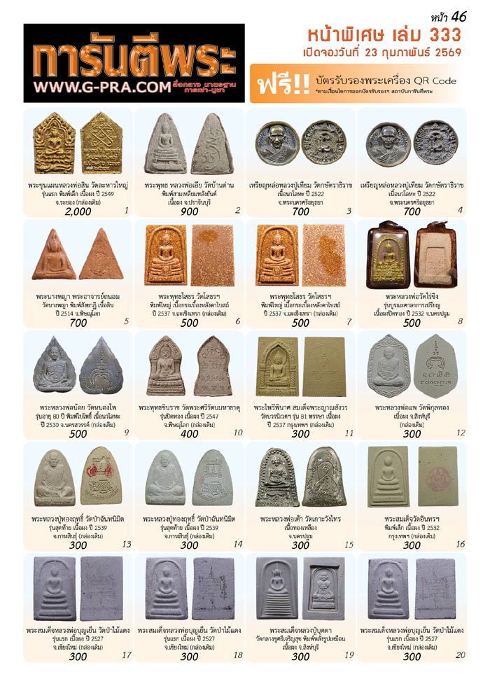 ** บุคคลทั่วไป สามารถโทรเช่าบูชาได้ตั้งแต่วันอังคารที่ 27 มกราคม 2569 เป็นต้นไป เวลา 9.00-16.30 น. ( เฉพาะวันเสาร์เวลา 9.00-13.00 น.) ได้ที่เบอร์โทร. ☎️ 02-521-0699 / 02-521-0712 และ 087-973-1963 / 086-532-5822 / 086-033-8858 หรือ ติดต่อเช่าบูชาได้ที่ร้านพระเครื่องการันตีพระ ชั้น1 ตึกมงคล **