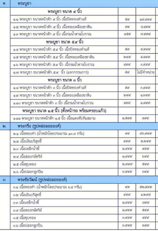 1.4 พระบูชา ขนาดหน้าตัก ๕.๙ นิ้ว เนื้อปิดทองคำแท้ บูชา 9,999.-บาท