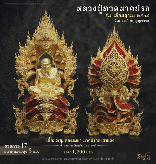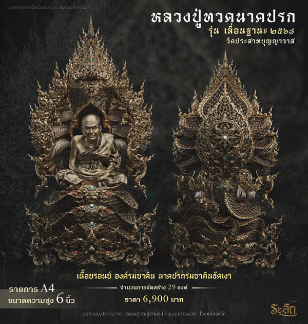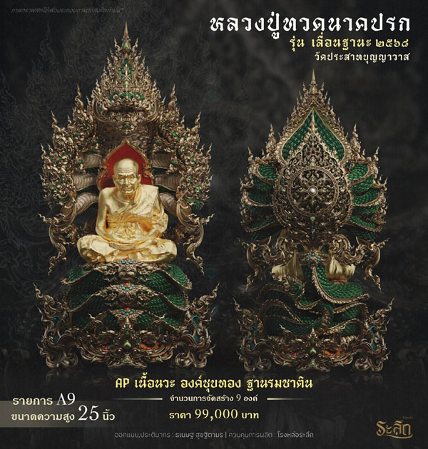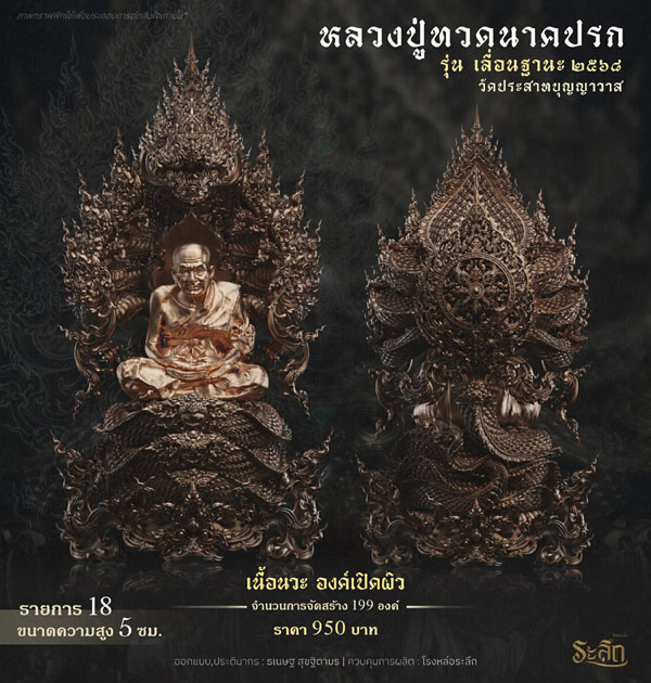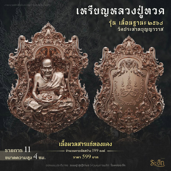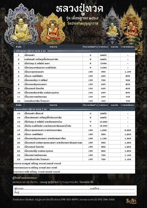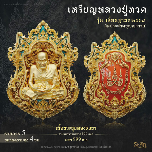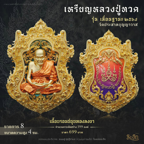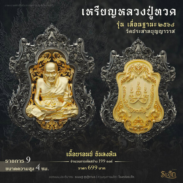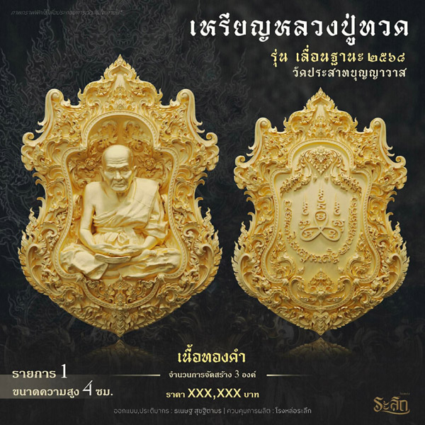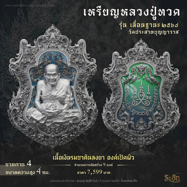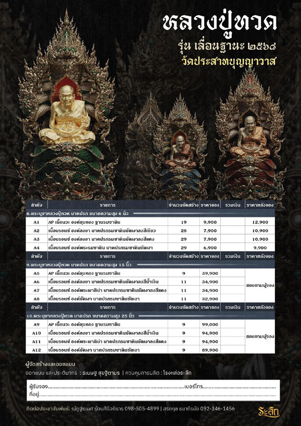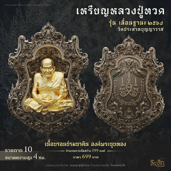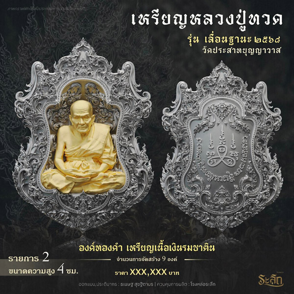 รายการจัดสร้างวัตถุมงคล หลวงปู่ทวด รุ่น เลื่อนฐานะ ๒๕๖๘ วัดประสาทบุญญาวาส โดยมีรายละเอียดดังนี้