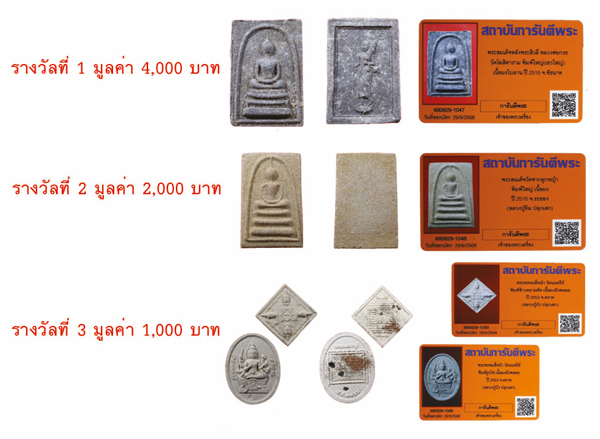 - เพื่อแทนคำขอบคุณนี้ ทางเว็บไซต์ฯ ขอมอบพระเครื่องพร้อมบัตรรับรอง QR Code จำนวน 3 รางวัล ประจำเดือนตุลาคม 2568 นี้ให้กับท่านสมาชิกฯ โดยทางเว็บไซต์ฯจะจับสลากจากรายชื่อท่านสมาชิกนิตยสารการันตีพระออนไลน์และสมาชิกพัฒนาเว็บไซต์ฯทุกท่าน ในวันเสาร์ที่ 4 ตุลาคม 2568 เวลา 16.00 น. และจะประกาศรายชื่อผู้ได้รับรางวัล ที่หน้าเว็บไซต์ฯในวันจันทร์ที่ 6 ตุลาคม 2568 โดยท่านสมาชิกสามารถรับรางวัลได้ที่สถาบันการันตีพระ ชั้น 1 หรือ แจ้งให้จัดส่งทางไปรษณีย์ได้ทางไลน์แอดที่ @g-pra.payment (24 ชั่วโมง) หรือโทรแจ้งที่เบอร์โทร 02-521-0699 , 02-521-0712 ( ค่าจัดส่ง 150 บาท )
