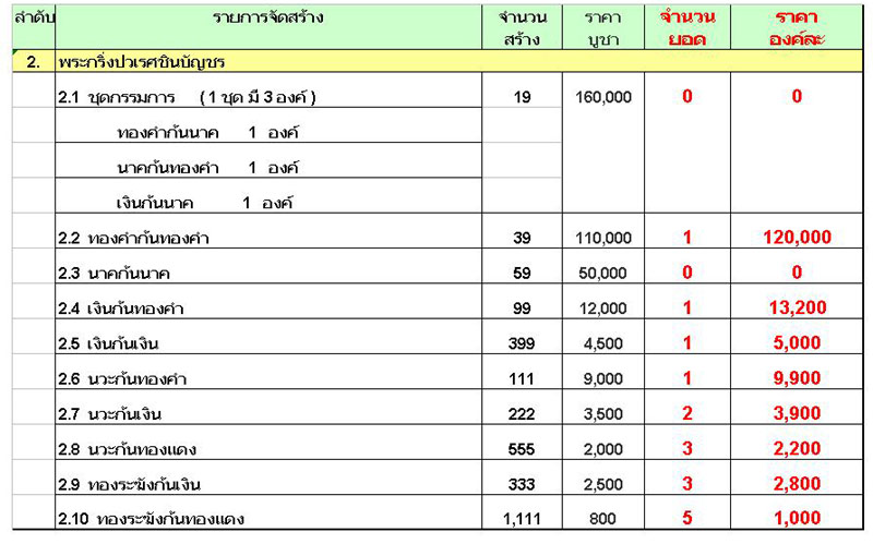 2.10 ทองระฆังก้นทองแดง 5 องค์ = 5000 + 100 = 5100 บาท