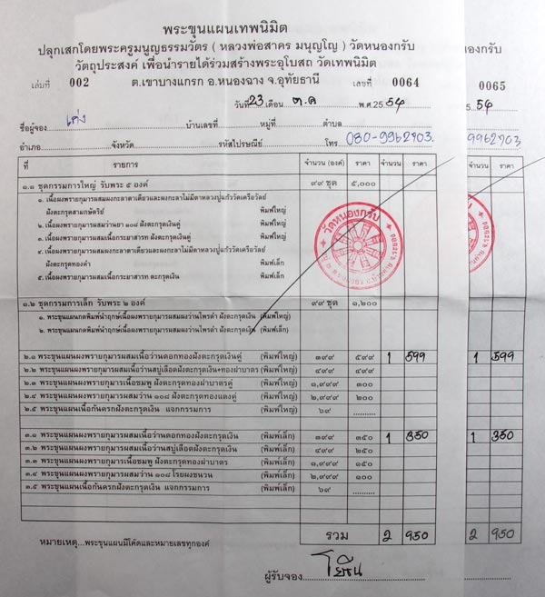 ใบจองขุนแผนรุ่นเทพนิมิตร (พระสวยมวลสารดีมากครับ )