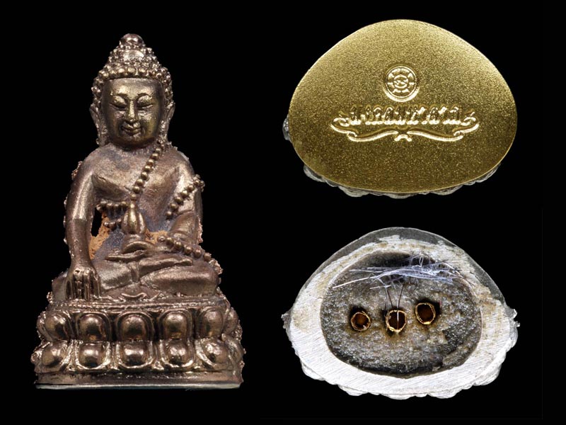 7 พระกริ่งเนื้อนวโลหะก้นอุดผง ฝังตะกรุด (ทองคำ 3 ดอก) สร้าง 185 องค์ องค์ละ 3,499 บ. มียอด 1 องค์
