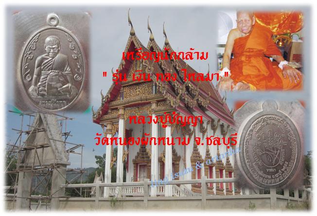 หลวงปู่ปัญญา วัดหนองผักหนาม จ.ชลบุรี เหรียญนักกล้าม " รุ่น เงิน ทอง ไหลมา "