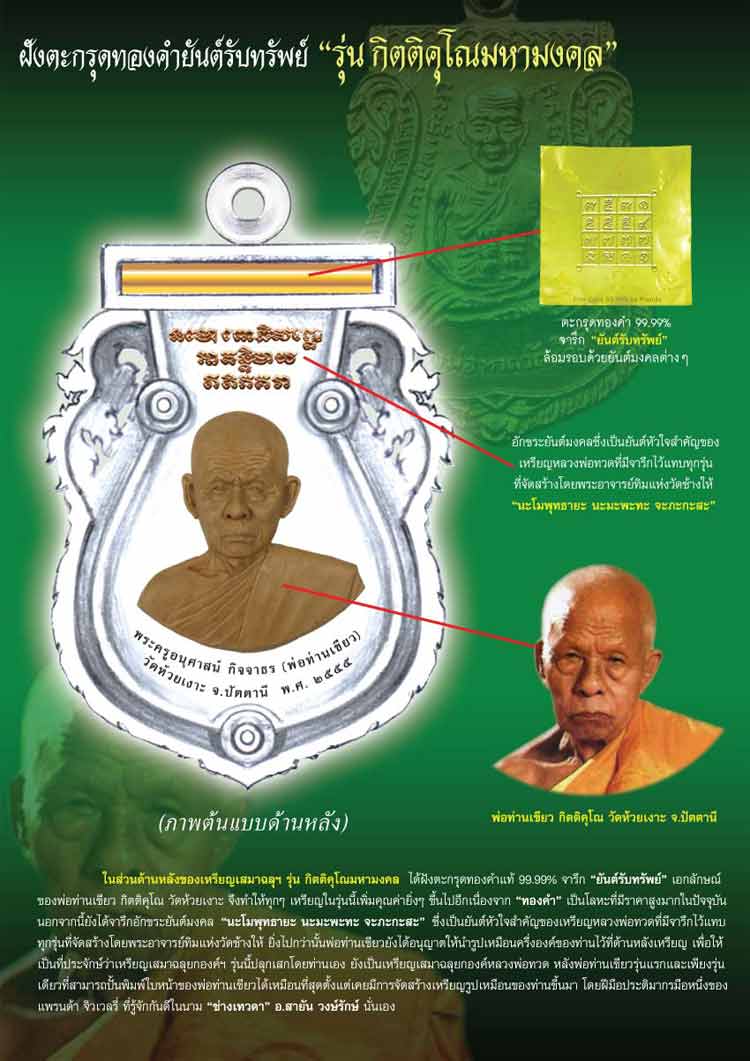การจัดสร้างเหรียญเสมาฉลุยกองค์ลพ.ทวด รุ่นกิตติคุโณมหามงคล พ่อท่านเขียว วัดห้วยเงาะ ในครั้งนี้ได้รวมความเป็นสุดยอดอันดับ 1 ไว้หลายอย่างอยู่ในเหรียญนี้เหรียญเดียว
