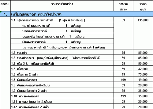 1. เนื้อทองคำไม่ลงยา จัดสร้าง 55 เหรียญ มี 1 เหรียญ ราคา 165,999 บาท