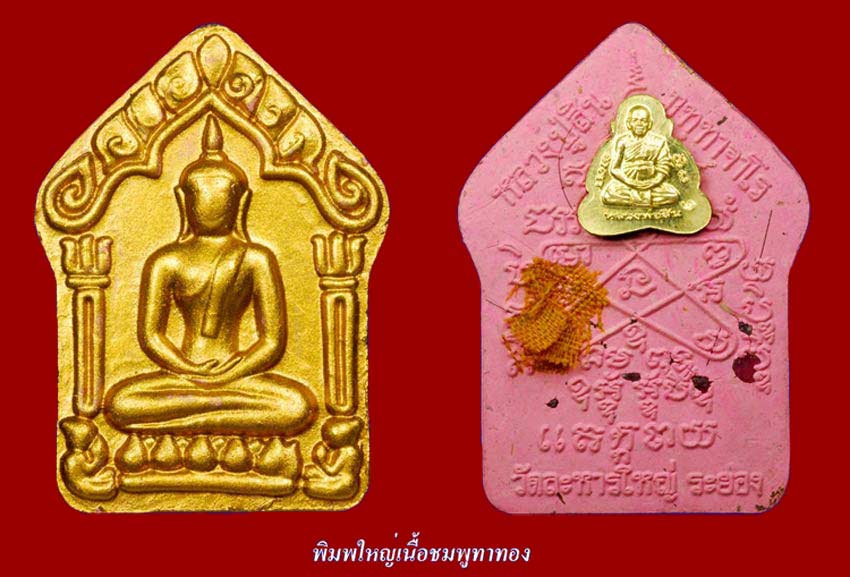 1.ขุนแผนผงพรายกุมารพิมพิ์ใหญ่ เนื้อชมพูทาทองหลังฝังปิดตารูปเหมือน พลอยเกศาจีวร